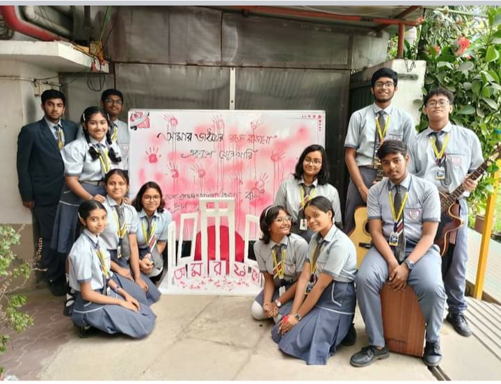In a symphony of reverence and creativity, Morning Bells Academy (High School) adorned itself to celebrate Rabindra Jayanti, honoring the luminary poet's 163 rd birth anniversary. Amidst the fragrant whispers of floral tributes, students embarked on a journey through Tagore's timeless verses and melodies, painting the day with vibrant hues of cultural richness. Through various activities, soulful recitations & mesmerizing dance performances, each moment was a lyrical ode to Tagore&